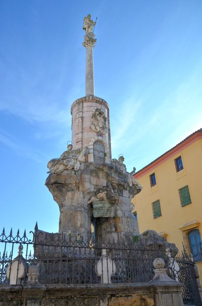 Ce pont romain (ci-dessous) que je franchirai à plusieurs reprises durant mon séjour cordouan fut érigé sur le Guadalquivir, par les Romains, après la bataille de Munda, 45 ans avant J.C. Les califes maures le restaureront au X ème siècle, avant que les Espagnols n'en fassent de même après la Reconquista. Ce pont relie le quartier Campo de la Verdad à celui de la Cathédrale. Il est composé de seize arches (dont deux seulement, les 14è et 15è, sont d'origine) et fit partie intégrante de la Via Augusta (voie romaine). A l'une de ses extrémités se dresse la Tour de la Calahorra, porte fortifiée du XII ème siècle,et à l'autre, la Porte du Pont (anciennement, porte romaine, puis maure). Au milieu du pont, on trouve un mémorial dédié à l'Archange San Rafael, datant du XVII ème. Ce pont est réservé aux piétons. Près de la Mosquée-cathédrale se dresse une statue du XVIII ème siècle honorant Saint Raphaël (deuxième photo), le patron de la ville de Cordoue.