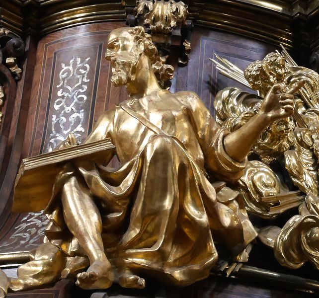 Je pars maintenant à la découverte de la Vienne médiévale, tout autour de cette StephansPlatz. Il fait froid dehors et le soleil peine à percer les nuages qui recouvrent la ville ce matin. Cette partie de la capitale fut protégée des destructions ottomanes grâce à l'enceinte qui se dressait à l'époque à l'emplacement de l'actuel Ring. On peut ainsi retrouver le plan médiéval d'autrefois. Autour de la cathédrale s'implantèrent de nombreux ordres religieux (jésuites, dominicains ou Chevaliers teutoniques). Je m'arrêterai ainsi à l'église dominicaine (ci-dessous en photo) qui fut consacrée une première fois en 1237. Mais celle-ci ne survivra pas au siège ottoman de 1529. L'édifice actuel fut érigé par Antonio Canevale de 1631 à 1634 et dresse sa splendide façade baroque sur la rue de la Poste (Postgasse). Voûtes et murs intérieurs sont ornés de fresques, dorures et stucs. Non loin de là, se dresse l'église des Jésuites (deuxième photo) dont la Compagnie de Jésus fut fondée en 1540 par Ignace de Loyola. Cette dernière deviendra le fer de lance de la Contre-réforme, ce mouvement de reconquête catholique face au protestantisme, à la suite du Concile de Trente (en 1545-1563). Au début du XVIIè siècle, Ferdinand II confiera aux Jésuites le contrôle de l'université (voisine de l'église). Ne vous y trompez pas ! Malgré sa façade austère, cette église vaut la peine qu'on y pénètre, ne serait-ce que pour ses fresques en trompe-l'oeil, sa chaire à incrustations de nacre (troisième photo ci-dessous) et ses colonnes de marbre typiquement baroques. Sur la chaire, on peut apercevoir l'apôtre Saint Matthieu, un livre à la main. Je comptais visiter le musée archiépiscopal mais celui-ci est malheureusement fermé pour travaux de rénovation. Situé au pied de la cathédrale, il présente habituellement une partie du trésor de celle-ci, avec entre autre, un évangéliaire carolingien du IX è siècle, un portrait du duc Rodolphe IV (1365) des plaques émaillées datant du XIIè siècle et le reliquaire de Saint Léopold décoré d'armoiries et de saints par les joailliers viennois en 1592. A suivre.
