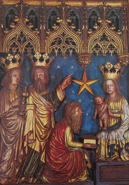 L'intérieur de l'édifice me paraît un peu triste. Et l'accès est réglementé. Contrairement à d'autres édifices religieux ailleurs en Europe, il faut payer pour faire une visite complète des lieux (incluant les catacombes, les deux tours nord et sud, et le Trésor). On peut admirer sur place un superbe maitre-autel décoré d'une lapidation de Saint Etienne, œuvre de Tobias Pock, et des sculptures créées par Johann Jakob Pock. On trouve également le portrait de maitre Pilgram (troisième photo ci-dessous), un sculpteur qui a peint son autoportrait, tenant une équerre et un compas, sur le pied de l'orgue. Pilgram apparaît aussi à l'une des fenêtres d'une chaire portant son nom. L'orgue, abrité dans une tribune, surplombe l'entrée depuis 1960, mais la cathédrale en compte un autre, plus récent, dans son aile sud. Enfin, un retable polychrome (quatrième photo) situé au-dessus de l'autel, et commandé par Frédéric III en 1447, décrit les effigies de 72 saints révélant des scènes de la vie de la Vierge et du Christ comme par exemple, ici, l'Adoration des Mages.
