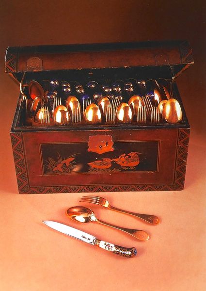 Autre curiosité de cette exposition, le couvert de l'impératrice Marie-Thérèse fait partie des rares objets personnels de la monarque encore existants. Il fut confectionné tout spécialement pour elle et l'impératrice était la seule à pouvoir l'employer. Elle l'emportait d'ailleurs lors de tous ses déplacements. Ce couvert se compose d'un couteau, d'une fourchette, d'une fourchette de service et d'une cuillère, et il est complété par un petit coquetier, une cuiller à œuf, un tire-moelle et une salière. Il fut réalisé en or vers le milieu du XVIIIè siècle. Ce n'est qu' à la fin de ce même siècle, qu'apparaitront les ménagères de table renfermant des jeux de couverts complets pour 12, 24, 36...personnes (le saviez-vous ? l'assemblage des couverts par douzaine se réfère au nombre des apôtres). Le couvert individuel et personnalisé laissa alors la place au couvert uniforme pour tous les membres de la famille impériale.