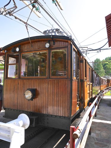 C'est le 24 juin 1912 qu'est autorisée la construction et l'exploitation du train de la Rhune. 1913 voit la création de la Société anonyme des chemins de fer basques, mais les travaux seront interrompus de 1914 à 1919, pour ne reprendre qu'à la fin de la guerre. Le 25 avril 1924, le premier tronçon Saint-Ignace- Les Trois Fontaines est achevé et la ligne d'être inaugurée le 30 juin. Compte tenu du terrain abrupt, le système de crémaillère fut retenu. Les motrices (ci-dessus) poussent les wagons à la montée et les retiennent à la descente. La traction et le freinage se font par les deux roues dentées centrales actionnées au moyen de couples d'engrenages alimentés par deux moteurs de 160 CV. Les freins sont actionnés par les deux conducteurs mais il existe aussi un frein automatique qui est conçu pour entrer immédiatement en action si le convoi dépasse les 9 kilomètres/heure. Les voitures, elles, sont en bois verni et furent construites par les établissements Soulé de Bagnères-de-Bigorre. Chaque train est composé de deux voitures, possédant six compartiments de dix places assises chacun, soit un total de 120 places par train. Entre 2004 et 2006, la Société du train fera l'acquisition de deux voitures provenant du chemin de fer de la Jungfrau (Suisse) dont l'un des éléments sera transformé en wagon atelier pour exécuter des travaux en ligne. Le petit train dispose enfin d'une voiture « plateforme travaux » munie d'un échafaudage pour l'entretien de la ligne électrique. Les motrices des convois furent construites par la Suisse et pèsent 17 tonnes. Alors que le Train de la Rhune ne disposait en 1938 que de deux rames complètes, la société dispose désormais de six motrices, huit voitures, un plateau travaux, une voiture atelier et une voiture suisse en dépôt. Une équipe de quinze personnes s'active toute l'année (jusqu'à 40 personne en période estivale) afin de permettre le bon fonctionnement du petit train à crémaillère. Les matériels roulants durent être restaurés et cette restauration se déroula dans les règles de l'art : plans et matériaux d'origine furent pour l'occasion ressortis et deux entreprises locales furent mises à contribution. D'un côté, on rénova organes de roulement et châssis des voitures, de l'autre, on refit à l'identique les compartiments des voitures avec les mêmes essences d'arbres qu'en 1924. La toiture est par exemple en pin des Pyrénées, le plancher en pin des Landes, le lambris en châtaignier de l'Ariège, et la plateforme en iroko, un bois exotique imputrescible d'Afrique. C'est non seulement une ascension au sommet de la Rhune que vous effectuez en montant à bord de ce train, mais aussi une remontée dans le temps.