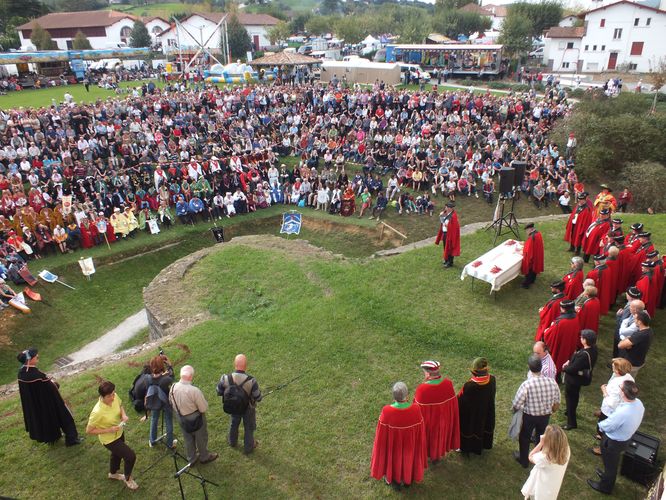 Il ne reste plus grand chose du château des barons. Celui-ci fut détruit puis reconstruit à plusieurs reprises. Quant aux barons, ils furent d'abord des vassaux du roi de Navarre. Non loin de là, Espelette offre la Place du Jeu de Paume, place qui accueillait le marché. On y célébrait des fêtes nocturnes et on y chantait les chansons basques au corpus étonnamment riche, qu’elles soient à boire ou satiriques, berceuses ou chants de mer. La même place accueillait également le marché aux bestiaux et aux chevaux (foirail) tous les quinze jours. Les porcs étaient quant à eux isolés dans un enclos un peu plus loin. Le marché durait alors toute la journée voire plusieurs jours.