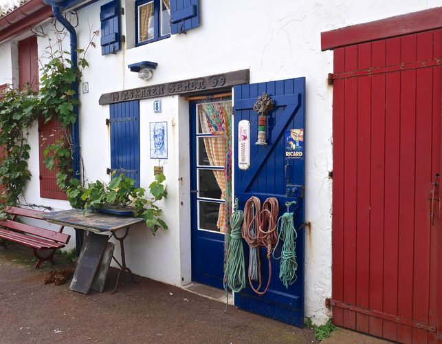 Jadis, le port de Biarritz se trouvait à l'emplacement de l'actuelle plage du Port-Vieux. Avant 1750, on l'appelait même Port dou Hart. Trente ans plus tard, naissait le futur port des pêcheurs actuel, qui ne comportait alors qu'une petite cale pavée entretenue par les marins, sur laquelle les embarcations étaient hissées à l'aide d'un cabestan en bois. La première digue, de sept mètres de long, fut construite en 1837, puis une seconde, de trente mètres de long, apparut en 1858. C'est Napoléon III qui avait souhaité l'extension du port mais ce projet n'aboutira jamais, car le puissant océan atlantique détruira au fur et à mesure les ouvrages déjà menés à bien. Le port des pêcheurs sera inauguré le 11 juin 1865, en même temps que la statue de la Vierge sur le rocher de Cucurlon. De nos jours, l'activité dominante de l'endroit reste la navigation de plaisance, le tourisme et...la restauration. Il est vrai qu'il est fort agréable de lézarder au soleil dans cet endroit niché entre les rochers. Je m'arrête devant des petites maisons de pêcheurs appelées crampottes (ci-dessous en photo). Ces refuges de pêcheurs sont une denrée très rare et restent la propriété de la ville. Elles sont attribuées aux propriétaires de bateaux mouillant dans les bassins du port et la liste d'attente est longue, puisqu'il faut patienter dix ans en moyenne. Mais qu'on y est bien, entre parties de carte avec les copains et les verres de pernod-ricard. Parmi les crampottes, se trouve le petit Casino, celui des locaux et des gens simples. Ici et là, je remarque des céramiques (deuxième photo). Ce port de pêcheurs fut proclamé Commune Libre, le 7 juin 1961, moins de trois mois avant ma naissance. Montmartre n'a qu'à bien se tenir, d'autant plus que son maire est élu à vie, et que rues et places ont été rebaptisées pour l'occasion.