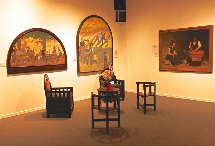 L'exposition, très bien faite, aborde le patrimoine architectural basque. Celui-ci était surtout rural jusqu'à la fin du XIX ème siècle. Au début du XX ème, apparut le régionalisme, et un mouvement néobasque aux côtés d'architectes comme Henri Godbarge, William Marcel, Louis et Benjamin Gomez ou Joseph Cazalis. Très vite, le style néobasque promu par Henri Godbarge lui vaut une réputation grandissante. Celui-ci jouera un rôle prépondérant dans l'urbanisation d'une ville comme Hossegor par exemple. Peintre, notre homme se fera connaître par ses dons en dessin et en aquarelle. Journaliste, il s'engage dans la presse locale et deviendra, entre autre, le correspondant de la Gazette de Biarritz. Ecrivain, il écrira enfin l'ouvrage régionaliste paru en 1931, Arts basques, anciens et modernes, origines et évolutions.