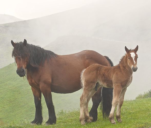 Je suis surpris par l'aspect non farouche des animaux rencontrés sur mon chemin. On dirait qu'ils sont accoutumés à la circulation automobile en montagne. Il est vrai que celle-ci est rare et je ne croiserai que quelques véhicules durant la journée. Iraty est l'endroit de France où le bassin versant méditerranéen est le plus proche de l'océan atlantique (60 kilomètres seulement), la forêt d'Iraty se trouvant dans le bassin de l'Ebre, fleuve espagnol.