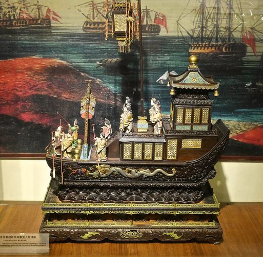Il y a deux ans déjà, je me rendais au musée de Guangzhou et explorais l'histoire de cette ville, jusqu'à la dynastie des Song. Ce musée de la ville ouvrit ses portes il y a bientôt 90 ans, dans la Tour Zhenhaï (en photo ci-dessous), l'un des symboles de Canton et l'un des plus anciens musées chinois. Celle-ci fut bâtie au nord de la ville, sur un point haut. Le bâtiment porte également le nom de « Pagode à cinq étages » en raison de sa forme et deviendra d'ailleurs rapidement le rendez-vous favori des peintres sous la dynastie des Qing. Je poursuis aujourd'hui ma visite avec l'arrivée des Européens en Chine, et tout particulièrement en 1514, avec le débarquement des Portugais par la mer. Ceux-ci furent les premiers à arriver dans cette région et à y établir dès 1517 un monopole sur le commerce extérieur grâce à leur comptoir commercial, en s'installant dans le delta de la rivière des Perles. Canton avait vu, pour sa part, et presque deux siècles auparavant, Zhu Liangzu (marquis de Yongjia) fusionner trois villes situées au nord de la cité, durant la dynastie des Song. La province du Guangdong jouit d'un climat tropical de mousson et le riz, qui reste la grande culture, apporte deux récoltes annuelles. En ce qui me concerne, je supporte tant bien que mal ce temps chaud et humide. Le delta de la rivière des Perles est de nos jours l'un des plus grands centres producteurs de soie de la Chine. La pêche y est extrêmement active sur le littoral, soit le quart des prises chinoises. Outre le thé et le tabac, la province cultive alors les fruits tropicaux et la canne à sucre, mais on y trouve par contre peu de ressources minérales : un peu de charbon seulement au nord de la province, du tungstène, des schistes bitumineux...Le Zhu Jiang est le nom chinois de cette rivière des Perles qui alimente le fameux delta à Guangzhou. Ce cours d'eau mesure un peu moins de 2200 kilomètres et arrose la ville de Canton. Et tient son nom d'une île nommée « île de la perle de mer » qui existait autrefois au milieu du lit du fleuve. Cette île a aujourd'hui disparu, en raison du changement du cours du fleuve.