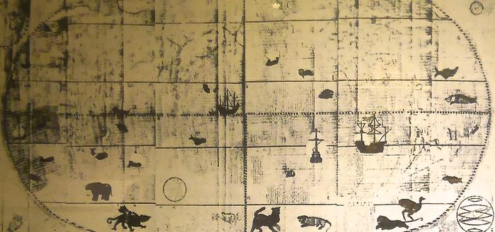 Canton sera le premier port chinois à s'ouvrir à la culture occidentale, en 1757, sous le règne de Qianlong. Ecoles et hôpitaux y fleuriront comme par exemple cette école de traduction fondée en 1864 par Tong Wen Guan. Cet établissement deviendra l'une des meilleures écoles de traduction impériales chinoises, procurant déjà à l'époque des documents en anglais, allemand, français, japonais et russe. Trois siècles auparavant, un autre personnage était arrivé à Canton : dès 1582, le prêtre jésuite italien Matteo Ricci avait choisi d'y diffuser sa foi, en développant largement les échanges culturels entre l'Occident et la Chine, tout en enseignant parallèlement les sciences et la technologie de notre monde. Passionné par la Chine, notre missionnaire dessinera des mappemondes afin de faire connaître aux Chinois le reste du monde. Le musée de Canton m'offre aussi d'admirer, en photo ci-dessous, la première carte du monde qu'il réalisera en Chine.