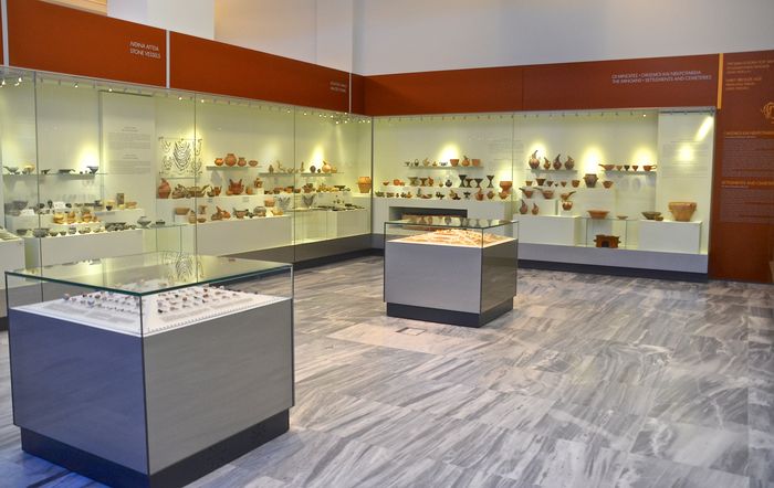 Le musée actuel fut érigé d'après les plans innovants de l'architecte grec Patroklos Karantinos. En effet, la région étant sujette aux séismes, il fut décidé, dès l'origine, de bâtir une construction antisismique tout en prévoyant dès le départ les futures extensions du musée. Cette réalisation reste un bel exemple d'architecture moderne qui fut d'ailleurs récompensée par le Bauhaus (courant artistique s'intéressant entre autres à l'architecture) et qui répond aux besoins d'un musée, à savoir un éclairage particulier, et un plan de circulation facilitée pour un grand nombre de personnes. Enfin, les matériaux employés lors de la construction rappellent les palais minoens. Une première rénovation du site eut lieu en 1987, permettant d'améliorer les circuits électriques et d'installer la climatisation et le système de protection incendie. A cette occasion, on revit aussi l'éclairage en remplaçant les verrières d'origine par un éclairage artificiel . Une seconde restauration débuta en 2002, d'après les plans de l'architecte grec Alexandros Tombazis, et s'attaqua aux mêmes chantiers qu'en 1987, mais une nouvelle aile (destinée à accueillir les réserves) fut construite et l'on mit aussi en valeur les ruines de l'ancien monastère franciscain. Aujourd'hui le musée archéologique a heureusement rouvert après avoir fermé ses portes jusqu'en 2009, suite à des infiltrations d'eau. Il abrite plusieurs salles et offre de voir des œuvres diverses, depuis la Préhistoire et touchant bien sûr à l'histoire de la Crète sur une période de 5500 ans, allant du Néolithique à l'époque romaine, même si la plus riche collection concerne les objets minoens venus des palais de Knossos, Phaistos, Malia, Zakros, ou Aghia Triada. L'exposition se tient sur deux niveaux mais je ne pourrai malheureusement pas en voir l'intégralité puisqu'à compter du 1er novembre (pour la saison hivernale), les salles situées au premier étage ne sont plus accessibles, à l'exception des fresques minoennes.