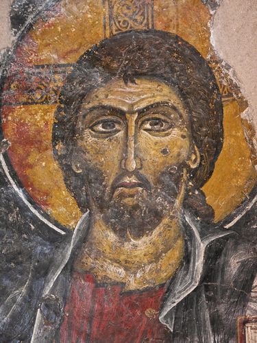 Après avoir avalé un bon café offert par Yanis à la Taverne Spinalonga, je reprends la route en direction de Kritsa, et passe de la mer à la montagne (ci-dessous). Je serpente sur une petite route durant une vingtaine de kilomètres, en espérant ne jamais me retrouver face à un camion car il est pratiquement impossible de se croiser à certains endroits. Le temps est splendide mais il souffle un vent fort qui me rappelle que novembre est bien là. Kritsa est un petit village de montagne dont les maisons blanches s'accrochent au contrefort du massif du Dikti (qui culmine tout de même à 2148 mètres). Pour les randonneurs, il existe une belle balade dans les gorges de Kritsa : il suffit de prendre la route de Lato, puis après un petit pont (situé dans un virage), prendre sur la gauche un petit chemin qui vous conduira vers le lit de la rivière. De là, prenez ensuite sur votre droite, et admirez les parois rocheuses tapissées de lauriers. Point de balade en montagne pour moi aujourd'hui, car ce qui m'attire ici est l'église byzantine de la Panagia Kera. Construite sous les Vénitiens, entre les XIII è et XIV è siècles, cette modeste église comprend trois petites nefs voûtées entièrement recouvertes de fresques (deuxième photo ci-dessous). Ces peintures très anciennes sont magnifiquement conservées et illustrent, en quatorze panneaux couvrant les murs et les voûtes, les Evangiles apocryphes (fait rare dans l'histoire de l'art). La vie de la Vierge occupe la nef centrale, tandis que Sainte Anne est au sud, et Saint Antoine au nord. Rappelons que ces évangiles apocryphes sont des récits chrétiens antiques sur Jésus, et différents des évangiles de Matthieu, Marc, Luc et Jean. On les surnomma apocryphes (qui signifie secret, caché) car l'Eglise s'en méfia, et ces évangiles eurent une diffusion bien moindre que les quatre autres. Plusieurs d'entre eux, qui n'ont pas été conservés, ne sont connus que par des citations très fragmentaires des Pères de l'Eglise. Rédigés dans le courant du II ème siècle, deux méritent cependant une mention spéciale:l'évangile de Pierre et celui de Thomas, décrivant respectivement la résurrection de Jésus en train de se produire, et 114 paroles de Jésus dont plusieurs se retrouvent sous une forme voisine dans les Evangiles canoniques.