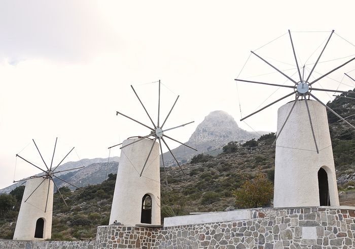La promenade est attrayante lorsqu'on monte jusqu'au col (en venant d'Héraklion). Cependant, le plateau du Lassithi se trouvant en contrebas des montagnes qui l'entourent, reste une cuvette marécageuse dont la rivière a besoin d'être curée régulièrement pour éviter les inondations. L'endroit fut occupé très tôt dans l'histoire, puisque la grotte de Dikti était déjà un lieu sacré à l'époque minoenne et que la grotte de Trapéza, près de Tzermiado, semble avoir été occupée dès le Néolithique. Lors de l'invasion des Doriens, vers 1100 avant J.C, les Crétois utilisèrent probablement le plateau pour fuir l'occupant. Les Vénitiens eurent aussi maille à partir avec les habitants de la région, à tel point qu'ils durent vider purement et simplement le plateau de sa population en 1263, en déracinant les arbres et en arrachant les cultures. Décision bientôt regrettée par cet envahisseur qui dut rapidement affronter la pénurie alimentaire alors que le plateau fertile était désormais inutilisé. On se remit donc à cultiver la haute plaine et les ingénieurs vénitiens de mettre au point des éoliennes pour pomper l'eau et assurer la bonne irrigation des champs. Cela se passait il y a 650 ans ! Sous l'occupation turque, les habitants du plateau menèrent la vie dure aux Ottomans, mais subirent en retour de vives représailles. Le Grand soulèvement de 1866-1869 se terminera en effet par une défaite très lourde pour les insurgés, d'autant plus que l'un des commandants des troupes ottomanes, Ismaël Férik Pacha, était originaire du village de Psykhro. Enlevé en 1823, ce petit chrétien était entre temps devenu un militaire de haut rang en Egypte, et mourra peu de temps après avoir réprimé le fameux soulèvement.