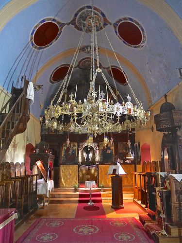 A mon arrivée sur les lieux, je ne vois personne. Tout est ouvert et je pénètre aisément dans le monastère déserté. Je distingue très vite le petit musée consacrée à l'écosystème du plateau du Lassithi mais ne pourrai le visiter faute d'éclairage. L'église (ci-dessous) m'ouvre ses portes et je détecte aussitôt une très forte odeur d'encens. Non loin de là se dresse aussi une petite chapelle dédiée à Saint Nicolas. Il s'agit ici d'un lieu de culte habituellement très fréquenté, puisque le monastère de Vidianis est l'unique site monumental du plateau. Il date du XIX è siècle est fut bâti sur un petit contrefort orienté plein sud.