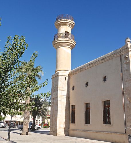 Toujours dans un mouchoir de poche, je découvre à quelques centaines de mètres de là, la mosquée (deuxième photo), laquelle date de l'occupation de la Crète par les Ottomans. Son minaret est remarquable, tout comme la fontaine qui la voisine et porte une inscription en turc ancien.