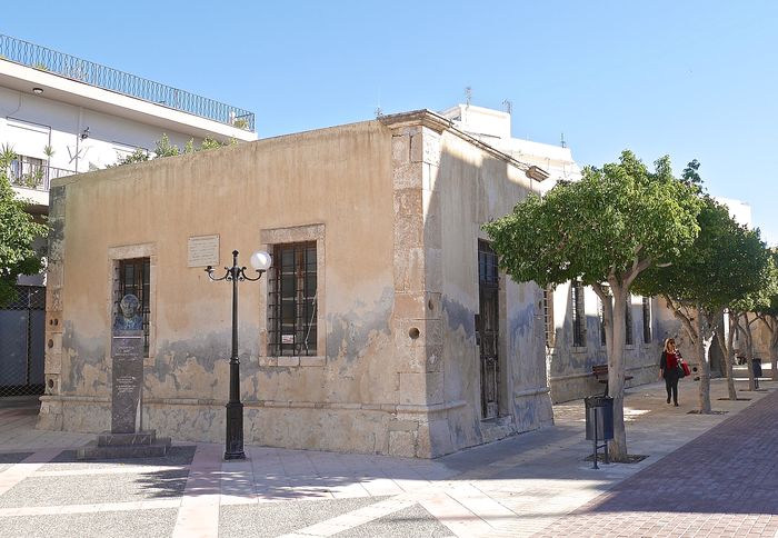 C'est encore une très belle journée ensoleillée qui s'offre à moi et je vais la mettre à profit pour vous emmener sur la côte sud-est de la Crète, plus exactement à Iérapetra. J'y rencontrerai des paysages contrastés, entre mer et montagne. La ville en elle-même ne m'attire pas au premier abord, mais elle dispose de quelques curiosités qu'il ne faut pas manquer. Je me gare facilement, en retrait du centre-ville puis marche pour rejoindre la vieille cité. J'ai pour projet de m'arrêter au musée archéologique (ci-dessous), mais il me sera impossible de faire ne serait-ce qu'une photo une fois sur les lieux. De plus, le personnel ne dispose d'aucune brochure d'information. Ce musée est installé dans une ancienne école turque. Ses collections sont très intéressantes et on y trouve notamment des vases de pierre de la période minoenne ancienne (3000-2000 avant J.C) ainsi que des céramiques avec décor de poulpe stylisé. La période hellénistique (400-300 avant J.C) est aussi bien représentée avec des éléments de sarcophages qui proviennent de la nécropole de Kavousi, au nord-ouest de Iérapetra. Une superbe sculpture à l'effigie de la déesse Perséphone trône dans une pièce. C'est une copie d'un chef d'oeuvre grec réalisé à l'époque romaine (au II è siècle après J.C). Dans la mythologie grecque, Perséphone est l'une des principales divinités chthoniennes, fille de Zeus et de Déméter. Déesse du monde souterrain (des Enfers), elle est également associée au retour de la végétation lors du printemps, notamment dans les Mystères d'Eleusys.