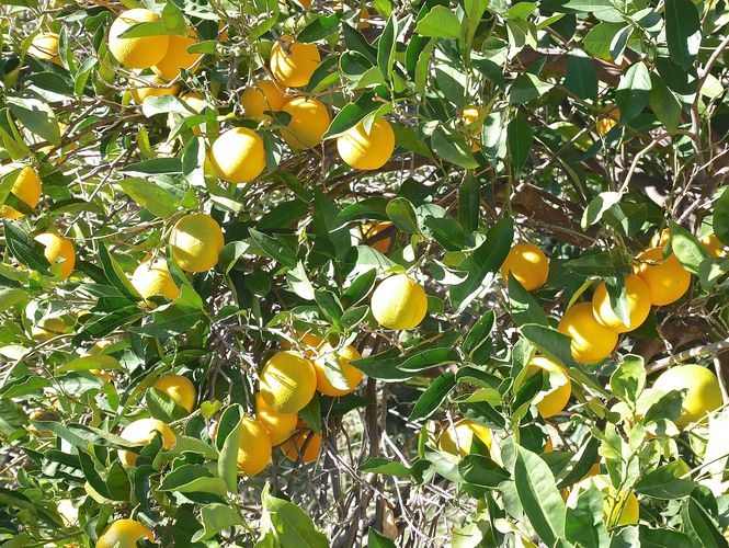 Je m'enfonce bientôt dans l'arrière-pays, qui ne manque pas non plus d'attrait. J’emprunte la route sinueuse qui va de Myrthos à Istro (sur la mer de Crète), en passant par de petits villages perdus comme Malles, Anatoli ou Kalamafka. Cette route traverse les gorges de Sarakinas et m'offrira des paysages à couper le souffle. Là, on cultive intensément l'olive, mais aussi les oranges de temps à autre (ci-dessous). Je ne verrai pas les gorges de Sarakinas mais juste l'entrée du site (troisième photo) dont l'accès se trouve le long de ma route de montagne. L'endroit se trouve près du minuscule village de Mithi et la gorge mesure 1,5 kilomètre de long, 150 mètres de haut pour une largeur de trois à dix mètres. En bas, coule la rivière Kriopotamos, et mieux vaut ne pas s'y aventurer n'importe quand. Je n'y m'y arrêterai pas mais les villages d'Anatoli et de Kalamafka sont, dit-on, réputés pour leurs tavernes typiques. Avis aux amateurs !