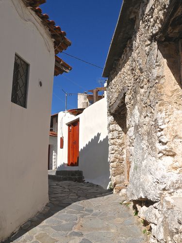Après avoir traversé la région par de petites routes, je profite au moins d'un bel axe routier entre Agia Galini et Réthymnon, en passant par le village de Spili. Ce bourg accueillant est blotti au cœur des montagnes et est la principale localité du sud de Réthymnon. J'y découvre sa belle fontaine vénitienne (ci-dessous en photo), rénovée, d'où jaillit l'eau à travers une vingtaine de têtes de lions. Il faut aussi se balader dans les ruelles (deuxième photo) surplombant le village. C'est le chemin à emprunter pour se rendre à deux musées, malheureusement fermés lors de mon passage : le musée de l'église et le musée folklorique. Ce dernier, logé dans une maison particulière, dévoile ce qu'était jadis la vie à Spili.