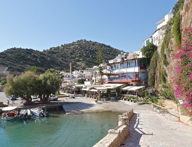 Sans voiture, il est impossible de visiter aussi facilement la Crète, je dirais même sans petite voiture, car il faut pouvoir se faufiler à l'intérieur des ruelles de certains villages. Les Crétois sont, de leur côté, très coopératifs, et manoeuvreront afin de vous laisser le passage dans certains cas. Si vous recherchez un coin perdu pour passer vos vacances les pieds dans l'eau, j'ai ce qu'il vous faut : Agios Pavlos et ses criques enchanteresses vous séduiront certainement, mais c'est le bout du monde et il vous faudra pour cela emprunter une petite route sinueuse, avec des côtes impressionnantes par endroits. Sur mon chemin, je croiserai deux hippies venus d'où je ne sais où, avec une contrebasse en guise de bagage. Les voyages permettent de faire parfois des rencontres insolites... Ma prochaine escale est Agia Galini (ci-dessous), petite ville nichée au creux du golfe de la Messara. Ce petit port de pêche est aussi une station balnéaire qui est dotée de bonnes infrastructures touristiques. Personnellement, je n'y ai pas trouvé beaucoup de charme mais on y vante pourtant son port, ses rues et ses tavernes.