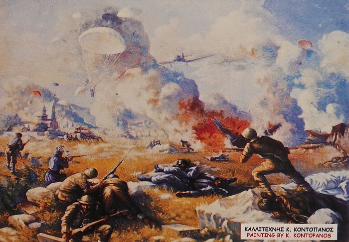 Au premier étage, sont présentées des maquettes de navires de la marine moderne, comme des destroyers, un bateau lance-missiles, une barge de débarquement avec camions et VPB à son bord, et des navires marchands et à passagers. Une autre salle contient le pont complet d'un destroyer (deuxième photo ci-dessus), tandis qu'une autre présente deux unités de propulsion de torpilles et de nombreux instruments de marine. L'exposition aborde également l'invasion allemande de la Crète durant la bataille de Grèce. Bien des siècles se sont écoulés et l'heure est à la bataille de la Crète, qui opposera les troupes britanniques et alliées aux parachutistes allemands durant dix jours, du 20 au 31 mai 1941. C'est au matin du 20 que le IIIè Reich lancera une invasion aéroportée de la Crète, sous le nom de code « Opération Merkur ». Sous les ordres du général Kurt Student, les parachutistes allemands seront largués à Maleme, Héraklion et Réthymnon, avec, pour mission, de s'emparer des trois terrains d'aviation pour l'envoi futur de renforts allemands (puisque la Royal Navy rendait tout invasion maritime impossible). Deux semaines durant, 4000 paras seront tués et 500 capturés. Du côté des troupes britanniques et néo-zélandaises, on déplora 3500 morts et 1900 blessés, avec la capture de 12000 hommes.