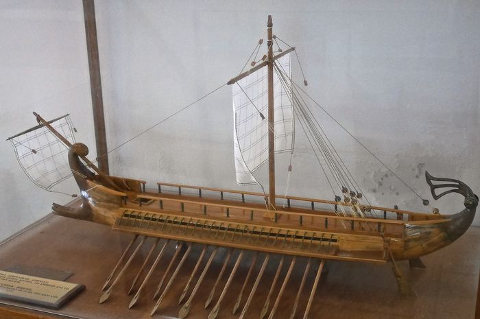La marine grecque de l époque géométrique apparait bientôt, avec trois types de navires. Le premier d'entre eux est une survivance de l'âge du Bronze, dépourvu de lisse de nage (moyen d'économiser du poids et donc d'alléger l'embarcation). Le deuxième est purement athénien car les galères possèdent alors une lisse de nage au-dessus du plat bord. Le dernier navire est la dière, contemporaine des birèmes phéniciennes (en photo ci-dessous) mais techniquement très différente. Son apparition fut provoquée par une guerre navale entre les états grecs lors de la guerre Lélantine.