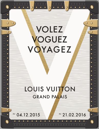 Exposition « Volez, Voguez, Voyagez – Louis Vuitton, au Grand Palais (Salon d'Honneur), entrée Square Jean Perrin, Champs-Elysées, Avenue du Général Eisenhower, à Paris (8è), jusqu'au 21 février 2016. Ouverte les lundi, jeudi et dimanche de 10h00 à 20h00, nocturne le mercredi, vendredi et samedi, de 10h00 à 22h00, fermée le mardi sauf durant les vacances scolaires. Entrée gratuite (vous pouvez toutefois réserver votre entrée gratuite pour 1€ sur le site, ce qui vous évitera de faire la queue en cas de forte affluence). Attention ! Valises et sacs de voyage sont interdits au Grand Palais, et votre bagage à main doit être contenu dans le format A3 (40 cm X 29,7 cm)