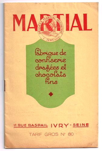 C'est aux côtés de son père que Raymond Martial apprendra le métier de dragiste. Il fondera sa confiserie, Dragées Martial, en 1912, dans la maison familiale, et se spécialisera dans la confection de dragées de baptême aux amandes. Entrepreneur prospère, il quittera Ivry sur Seine pour s'installer sur quatre étages, aux 55-58 rue Planchat. En 1932, nait l'entreprise « Fabrique de dragées Martial-Duchesne » qui propose au prix de gros de succulentes dragées pour garnir les tables et offrir aux invités. Deux ans plus tard, Raymond Martial ouvre une succursale au 79, avenue des Champs Elysées, pour les clients particuliers. Chaque client se voit alors offrir un échantillonnage de dragées bleues, roses ou assorties, accompagné d'un catalogue de boites réalisées en papier plissé, en vieux parchemin ou en daim blanc. De judicieux conseils de savoir-vivre sont aussi prodigués aux parrains pour lui assurer une cérémonie parfaite. Le même faste est offert lors du baptême des cloches d'églises. C'est à l'issue du diner offert par ses soins que le parrain offre à l'évêque un grand coffret de satin rempli des dragées les plus fines, tandis que de jolies boites sont distribuées aux invités présents. Peu à peu, le nombre de boutiques augmente dans l'ouest parisien. Et Bernadette, la fille de Raymond Martial d'être mise en scène dans les publicités qui vantent les dragées fraiches et roses comme bébé. Aujourd'hui encore, cette même tradition perdure sous l'égide du groupe franco-belge Jeff de Bruges, qui acquit la marque en 1997.