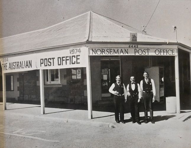 Autrefois, il fallait une semaine pour rejoindre Norseman depuis Esperance. Les pionniers les plus fortunés disposaient d'une tente , et les autres faisaient comme ils pouvaient. Des cabanes en bois étaient érigées ici et là avec le peu de matériaux disponibles et le sol était en terre battue. De toute façon, la tonne de fret était trop onéreuse (35 livres) pour pouvoir se permettre de faire venir des matières premières à bon compte. Les difficultés rencontrées par certains pour se loger n'avaient pas laissé indifférent certains propriétaires qui avaient aménagé une pièce sous leur maison afin de la leur louer. Avec l'augmentation de la population, les transports se développèrent : on se déplaçait à cheval, ou à bicyclette (pour les plus aisés). C'est à cette même époque qu'on assista à l'ouverture des façades des maisons, ce qui était plutôt bon signe puisque Norseman allait s'ouvrir au monde, et que les relations sociales se généralisaient. On commença alors à découvrir la société de loisirs (football, tennis, cricket, vélo, courses de chevaux et patin à roulettes). La première poste (ci-dessous) avait ouverte en 1895 mais le courrier n'arrivait qu'une fois par mois depuis Esperance. La première route, elle aussi, apparaitra en 1899 à l'initiative de Cobb & Co qui construisit un premier axe allant de Coolgardie à Esperance en passant par Norseman. N'oublions pas les trains de chameaux (les animaux avaient été jadis importés d'Afghanistan!) qui contribueront également à l'amélioration des transports, et étaient parfaitement adaptés aux fortes chaleurs régnant ici. Ces chameaux transportaient de la laine, mais aussi d'autres biens, établissant ainsi des liens entre les différentes communautés aurifères. En 1901, Norseman disposait désormais de sa brigade de pompiers, de sa loge maçonnique, d'une école, d'un institut d'enseignement de la mécanique et de deux grands magasins. A côté de cela, la ville, qui ne disposait toujours pas de prison, se contentait d'attacher ses prisonniers à un simple piquet !