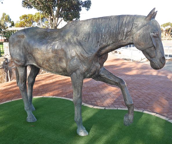 Revenons si vous le voulez bien à cette histoire incroyable du cheval : on prétend que Laurie alla dormir après avoir préparé son cheval pour la nuit. Le lendemain matin, l'animal aurait découvert de l'or sous ses sabots et l'aurait mis en évidence pour son maitre. Quoiqu'il en soit, ce cheval aura au moins gagné un nom pour la postérité et une statue en bronze, à l'angle des rues Roberts et Ramsay. Cette sculpture (en photo ci-dessous) est l'oeuvre de Robert Hitchcock.