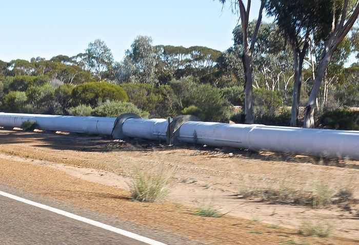Les mêmes gestes reviennent jour après jour : je me réveille tôt (vers 6h30), prends ma douche, puis mon petit déjeuner, range et boucle tout ce qui doit l'être avant de prendre la route. Adieu Kalgoorlie et bonjour Hyden, que j'atteindrai l'après-midi au bout de 400 kilomètres. Dès Kalgoorlie, j'emprunte la Great Eastern Highway qui me mènera jusqu'à Southern Cross où je ferai une pause. Le long de cette longue route chemine un pipeline qui approvisionne Kalgoorlie en eau depuis la ville de Perth. De temps à autre, des panneaux rappellent aux automobilistes de signaler une éventuelle fuite car le liquide est précieux.