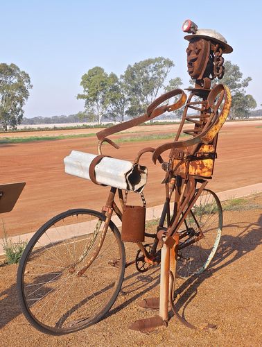 Hyden se trouve à 340 kilomètres, à l'est de Perth mais malgré l'éloignement du lieu, ce sont plus de 100 000 touristes qui visitent chaque année cette petite ville avec son attraction unique, le Wave Rock (ci-dessous en photo), un gigantesque rocher en forme de vague déferlante. Mais il n'y a pas que cela. Au printemps, plusieurs douzaines de fleurs sauvages (deuxième photo) forment des tapis colorés tandis que plus de quarante espèces d'oiseaux s'épanouissent dans ce milieu ambiant. A trois kilomètres du fameux rocher, objet de toutes les attentions, la petite ville de Hyden vit paisiblement et avec humour. A l'entrée de celle-ci, près de la minuscule gare ferroviaire, se dressent en effet une quinzaine de sculptures originales (ci-dessous, quatrième photo) représentant des locaux dans leur profession. Il ne faut manquer cela pour rien au monde. Bec sucré, j'ai le don pour repérer les cafés-boulangeries et Hyden n'est pas en reste de ce côté-là. Je dégusterai sur place mon premier (délicieux) croissant ouest-australien accompagné d'un cappuccino.