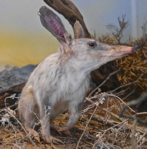 Je ne resterai pas longtemps à Denham, juste assez pour quérir des informations touristiques et faire le plein de carburant. Née de la culture perlière, la petite ville fit parler d'elle dès 1898. Et ressemble désormais à une station balnéaire type avec ses hôtels, restaurants et boutiques. Sur place, l'office de tourisme m'a indiqué le parc national François Péron dont l'accès se trouve justement sur la route allant à Monkey Mia, ma prochaine destination. Peu après avoir quitté Denham, un panneau routier m'indique le petit Lagon sur ma gauche, un lagon étonnamment circulaire qui sert de lieu de reproduction pour de nombreuses espèces de poissons. Quelques kilomètres plus loin, une piste me mènera à l'ancien domaine de François Péron, une ferme d'élevage. Le parc à lui seul recouvre 52 000 hectares mais une infime partie est accessible en camping-car. Là, plusieurs peuples aborigènes (Malgana, Nanda et Yingkarta) ont jadis fait de ces terres leur demeure ancestrale. Et les explorateurs français d'être les premiers à avoir étudié le peuple Malgana dès le XIX ème siècle. François Péron compila ainsi patiemment des informations anthropologiques, océanographiques et zoologiques lors des voyages sur place de Nicolas Baudin, en 1801 et en 1803. François Péron (en photo ci-dessus) embarquera dès l'âge de 26 ans en tant qu'élève en zoologie à bord du navire Géographe. En 1801, il explorera l'île Bernier, puis reviendra sur place deux ans plus tard pour découvrir la péninsule qui porte aujourd'hui son nom. Notre homme répertoriera un grand nombre de plantes ainsi que des histoires d'aborigènes dans son journal. De retour en France en 1804, il deviendra zoologiste et anthropologue de renom, puis consultant de Napoléon, et surtout ami et conseiller de l'Impératrice. Il ne remettra pas les pieds en Australie puisqu'il décédera d'une tuberculose attrapée au cours de ses expéditions, six ans avant son retour. Le parcours que j'effectue me conduira successivement à un petit musée qui explique brièvement ce en quoi consiste la baie des requins, son histoire et son devenir plutôt encourageant puisque articulé autour du projet Eden visant à sanctuariser la zone par la réintroduction d'espèces animales. Dans une seconde salle, j'admirerai justement quelques animaux empaillés vivant (ou ayant autrefois vécu) dans le parc François Péron, dont un étrange lapin ressemblant un peu à un kangourou (ci-dessous).