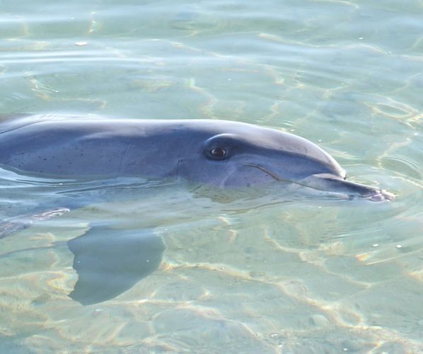 Je passerai la nuit prochaine à Monkey Mia, dans l'espoir d'assister le lendemain matin au repas des dauphins (ci-dessous). Je me doutais que cette activité devait attirer du monde, mais à ce point...nous serons environ 60 personnes massées le long de la plage, au bord de l'eau, attendant que quelques dauphins approchent de nous et veuillent bien se laisser photographier. Opération réussie ce matin avec trois dauphins très coopératifs et une ambiance bon-enfant au milieu des clics des appareils-photos. Il faut savoir que ces cétacés sont venus pour la première fois à Monkey Mia dans les années soixante. A l'époque, l'habitude avait été prise de gaver les pauvres bêtes, ce qui aboutira à une forte mortalité des petits, qui n'étaient plus habitués à chercher eux-mêmes leur nourriture. De 1983 à 1994, il fut observé que quatre bébés dauphins sur quinze survivaient. L'année suivante, il fut décidé de nourrir avec parcimonie les dauphins. Le résultat ne se fit pas attendre : presque tous les petits survécurent. Comme quoi...