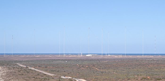 Ce matin, après une journée de repos à Carnarvon, me voici reparti pour de nouvelles aventures. Je me dirige vers Exmouth, une petite ville de 2500 âmes, située à la pointe du Cap nord-ouest, et à plus de 360 kilomètres de Carnarvon. Le premier document faisant référence à cette région remonte à 1618, lorsque le capitaine Willien Janz du navire « Mauritius » mentionna sa visite sur place, 150 ans avant que James Cook ne découvre Botany Bay. Le capitaine australien Phillip Parker King s'arrêtera ici deux cents ans plus tard, en 1818, alors qu'il explorait la côte nord-ouest et donna le nom d'Exmouth à cet endroit, en hommage à son héros, le Vicomte Exmouth. Ensuite, les pêcheurs de perles débarquèrent, tout comme les éleveurs, qui s'occupèrent de grands troupeaux de moutons dans la zone. Fondée en 1967, la ville d'Exmouth jouera un rôle dans les télécommunications puisque c'est simultanément à la création d'une base de communication très basses fréquences dédiée à l'armée américaine, que cette ville verra le jour. Du pied du phare de la baie, à 25 minutes de voiture, et en dehors de la ville, j'aperçois aisément le site de la base (ci-dessous), avec ses treize pylônes : A l'époque de la crise des missiles à Cuba et de la Guerre froide, les États-Unis possédaient l'arme nucléaire et les sous-marins, mais connaissaient une faille dans leur réseau de communication. C'est donc le 9 mai 1963 qu'un accord sera signé entre l'Australie et le gouvernement américain pour développer sur place une station de communication, afin de permettre aux sous-marins nucléaires américains de communiquer avec leur Etat-Major. La station de radio à très basses fréquences occupe ainsi 400 hectares et comporte 13 pylônes, dont le plus élevé, la Tour O (située au centre) s'élève à 389 mètres de haut. Et repose sur une dalle de béton ancrée à 17 mètres de profondeur. Il faudra d'ailleurs 24 000 m3 de béton pour construire la totalité de cette base, ainsi que 417 kilomètres de fil de cuivre pour les antennes. Le projet sera rebaptisé en 1968 du nom de Harold E.Holt, Premier ministre australien qui se noiera en décembre 1967 à Portsea (Victoria). A ce titre, le golfe d'Exmouth reste marqué par sa vocation militaire qui ne date pas d'hier. La région aura collaboré de longue date avec les pays alliés comme, par exemple,, pendant la Seconde guerre mondiale, l'endroit ayant servi de base américaine de sous-marins, tout particulièrement pour accueillir les sous-marins en lieu sûr pour se ravitailler avant de reprendre la mer, tout particulièrement à la suite de la retraite de Java, en mars 1942 (les Japonais ayant alors envahi la zone). Tant Darwin que Broome restaient en effet exposées à d'éventuelles attaques aériennes de la part du Japon, d'où l'installation à Exmouth d'une base alliée, comprenant entre autre une barge faisant office d'une réserve de carburant de 500 tonnes placée à l'entrée du golfe, une zone d'accueil pour hydravion, et des installations de surveillance (radars et batteries anti-aériennes).