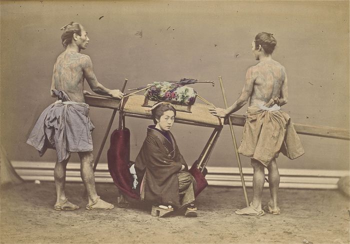 La dernière partie, elle, intitulée Au retour, s'intéresse aux résultats obtenus à l'issue de ces entreprises. La mémoire du voyage repose sur des supports variés comme des carnets de route, des dessins, des photographies ou des cartes. On trouve ainsi un album de photographies réalisées au Japon et coloriées à la main (troisième photo). Nous sommes alors en 1882 et Gabriel Maget, médecin de marine, a été chargé le 21 juin 1881 d'une mission ethnographique et anthropologique dans ce pays. Dans une lettre envoyée de Hachioji un an plus tard, notre homme annonce l'envoi de divers documents, dont soixante photographies destinées à appuyer les notes anthropologiques. L'album est essentiellement composé de clichés d'atelier qui représentent des personnalités publiques et des personnages typiques du Japon traditionnel comme, par exemple, des porteurs de palanquins, des porteurs d'eau, des paysans ou des guerriers. Ces clichés ont le plus souvent été pris à Tokyo et à Yokohama, ou dans d'autres localités du pays. Et de constater que nombre de ces tirages avaient été coloriés à la main, cet art nouveau étant apparu là-bas dans les années 1870, à destination d'un public étranger. Le résultat est en effet séduisant et extrêmement esthétique, offrant un indéniable cachet pittoresque. Parmi les photographes locaux ayant développé cet art, on notait Beato, Stillfied, Farsari, Uchida Kuichi ou Kuzakabe Kimbei. Dans d'autres cas, et lors de la même mission, Gabriel Maget rédigera deux rapports sous la forme de carnets de voyage, l'un, consacré à des observations anthropologiques et ethnographiques, l'autre, concernant la partie géographique du voyage avec quatre dessins tracés très habilement. Cette même mémoire distille l'analyse, divulgue des données sous la forme de publications, de conférences et d'expositions. Et l’explorateur d'être médiatisé au fil du temps, en construisant sa propre légende.