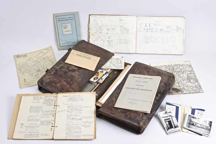 La seconde partie, appelée Sur le terrain, est dédiée au voyage lui-même. On s'intéresse alors aux objectifs et à leur évolution dans le temps, à l'extrême diversité des endroits visités et des contextes d'étude, à l'importance de la logistique et à la grande dette envers les savoirs locaux, les risques encourus par les explorateurs et leurs accompagnateurs. Ces voyages ont de multiples facettes et se présentent alors sous la forme d'expéditions maritimes, archétypes du voyage de découverte. Et de s'attacher à la découverte de l'expédition Duperrey sur le navire La Coquille, du côté de Sandy Bay. Dès son retour en France et au terme de son expédition autour du monde en tant que commandant de la corvette La Coquille, entre 1822 et 1825, Louis-Isidore Duperrey entreprendra la préparation de la publication de son récit de voyage et des résultats obtenus. Durant la traversée, des croquis avaient été exécutés, principalement par Jules-Louis Lejeune et Auguste Bérard. Une fois en France, les planches préparatoires à la gravure seront cette fois dessinées par Antoine Chazal, peintre botanique et animalier. Une planche représente ainsi le navire La Coquille au mouillage devant Sandy Bay (en photo ci-dessus), île de l'Ascension, perdue au milieu de l'Atlantique. Et que dire de l'expédition du Géographe, sous l'égide de Nicolas Baudin, dans les Terres australes, un voyage entrepris sous le Consulat avec l'appui de Bonaparte, alors Premier consul, périple qui avait alors pour objectif l'exploration géographique et scientifique du continent australien, où les Anglais avaient déjà installé depuis quelques années, à Port Jackson (l'actuelle ville de Sydney) une colonie pénitentiaire ? Cette expédition mit en scène les deux corvelles Le Géographe et Le Naturaliste, commandées par Baudin et Hamelin, lesquels reconnurent entre 1801 et 1804, et en trois campagnes, une partie des côtes de la Nouvelle-Hollande (actuelle Australie) et de la terre de Diemen (Tasmanie). Au retour, le bilan de ce voyage s'avérera particulièrement riche en matière d'histoire naturelle, comme en témoignent les dessins de Lesueur, qui font aujourd'hui partie intégrante des collections du Muséum d'histoire naturelle du Havre. Quant aux documents nautiques élaborés durant le voyage, comme les journaux de bord, les observations astronomiques et les cartes sont, eux, conservés aux Archives nationales. Il y a aussi les voyages extrêmes, parmi lesquels l'exploration des pôles (première photo ci-dessous), ou bien plus modestement l'exploration des patrimoines régionaux sur le sol français. Adrien Gerlache de Gometry, commandant de la Belgica, s'illustrera ainsi en menant l'expédition scientifique dans l'Antarctique de 1897 à 1899. En 1905, ce sera au tour du prince Philippe d'Orléans d'affréter son navire pour effectuer une croisière depuis le Spitzberg jusqu'au Groenland lors d'un voyage de plusieurs mois mêlant exploration océanographique, études topographiques, collectes naturalistes et chasses aux espèces animales locales, qui donnera lieu à une large couverture photographique fort utile pour la publication, en 1907, du récilt de cette expédition. On y retrouvera en effet d'impressionnants tirages panoramiques qui donneront une idée éloquente de l'âpreté des conditions d'un tel voyage. Le navire, un temps emprisonné par les glaces parviendra heureusement à se dégager. Du côté des patrimoniaux régionaux français, c'est au gouvernement de Vichy, au début des années 1940, qu'on devra le lancement d'une série de chantiers intellectuels et artistiques afin de procurer du travail à de jeunes diplômés ou artistes au chômage en cette période troublée. Un chantier sur la prospection locale de l'habitation régionale sera ainsi lancé en 1941, qui débouchera sur la constitution d'une documentation scientifique s'intéressant aux caractères traditionnels de l'architecture française. Pour l'occasion, ce seront plusieurs dizaines de jeunes architectes qui seront recrutés pour mener à bien cette tâche exploratoire. Parmi eux, Jacques Lamy se chargera du département de la Corrèze et constituera un journal de bord alertant sur la situation dégradée de l'endroit, jusqu'au moment où, le 1er juin 1944, il décidera d'arrêter son travail. Il reviendra en 1967 au Musée national des arts et des traditions populaires pour restituer sa mallette (deuxième phoro) et tout ce qu'il avait produit lors de ses enquêtes de terrain : on y trouvera des copies de cadastres, des croquis, des photographies et ses prises de notes. Cette deuxième partie de l'exposition aborde aussi la logistique du voyage, à travers les déplacements, les guides et les étapes. Ne nous méprenons pas ! La diplomatie était alors de mise pour obtenir les moyens nécessaires à la réalisation de ces grandes expéditions. Restaient ensuite les risques du métier.