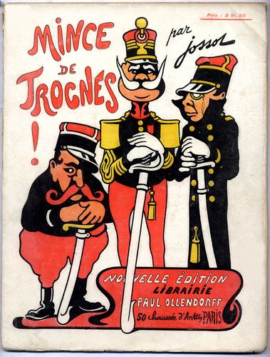 Henri Jossot sera pour sa part le seul artiste qui ne renoncera pas à la caricature une fois devenu affichiste comme en témoigne l'une de ses plus célèbres affiches consacrée aux sardines Saupiquet, ou celle vantant les qualités du Guignolet Cointreau (ci-dessous). Pour Jossot, l'affiche doit « hurler » et « violenter » le regard. Ainsi, les personnages de ses affiches gardent-ils toute l'exagération de la déformation, du laid, du grotesque, de la férocité graphique. Et tous ces caricaturistes d'écrire ensemble une nouvelle page de l'histoire de l'affiche, comme ces affiches de la guerre 1914-1918, véritables instruments de propagande qui concourront massivement à la mobilisation des ressources humaines et financières de l'époque. Cet « effort de guerre » durera jusqu'à la reconstruction en 1920.