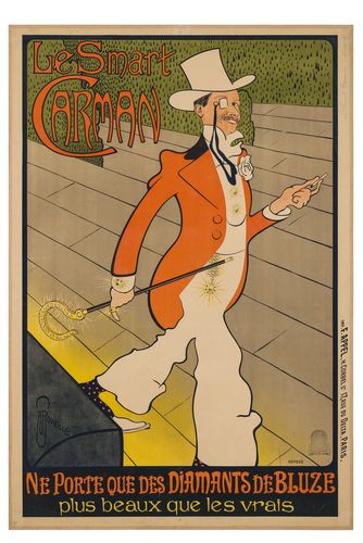 Adrien Barrère, Henri Jossot, Jean-Louis Forain, Charles Léandre et Léonetto Capiello feront partie de ces caricaturistes qui embrasseront pleinement la carrière d'affichistes en cette fin du XIX ème siècle, tandis que d'autres, comme Sem ou O'Galop exerceront deux activités. Mais, lorsque ces caricaturistes deviendront affichistes, ils ne se livreront pas à la caricature, se contentant d'en utiliser les ressorts techniques : l'affiche devra alors « attirer l'oeil » autant que la Une d'un journal, avec peu de couleurs, minimisant ainsi les coûts de production tout en obtenant une efficacité optimale. Nos dessinateurs auront également leurs spécialités:si Leonetto Cappiello, O'Galop et Jossot, présentés lors de cette exposition, contribuent au renouveau de l'affiche, Leonetto Cappiello, lui, se tournera surtout vers le monde des arts et du spectacle, croquant acteurs, écrivains, musiciens, actrices et femmes du monde. Il débutera en publiant dans Le Rire en 1889, puis dans le Sourire, Le Théâtre, Le Cri de Paris ou l'Assiette au beurre. Et d'adapter au grand format les silhouettes précédemment croquées, tout en recherchant le mouvement à traavers la ligne et les contrastes colorés, comme sur la deuxième affiche ci-dessous. Formes et tâches de couleurs se détachent alors sur un fond sans décor, et sans perspective, pour aboutir à un fort impact visuel. Cappiello fera ainsi de l'affiche un art de la rue très salué d'ailleurs par les critiques, et reconnu par la jeune génération d'affichistes de l'après-guerre, comme Cassandre ou Carlu.