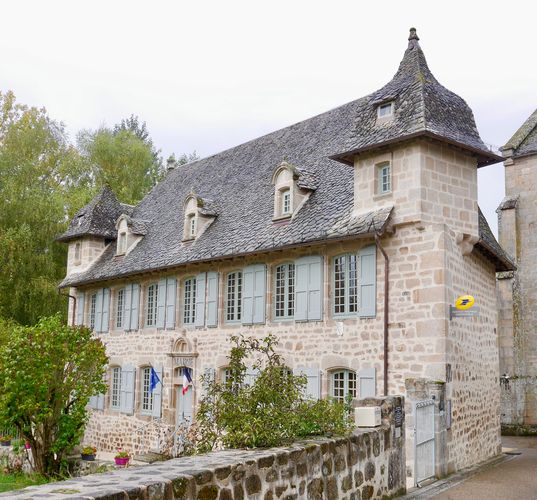 Je poursuis mon chemin en me rendant à Auriac, réputée pour son église romane fortifiée des XII-XIII ème siècle (en photo ci-dessous) et son ancien prieuré. Cet endroit existe depuis la Préhistoire et la commune fait partie du canton depuis 1864. Depuis Auriac, il est possible de découvrir des petites chapelles comme celle de Dezejouls, du Puy du Bassin et de Coujouls, de visiter le petit village de Job et de se rendre à la cascade et au menhir de Redenat. A quelques kilomètres de là, se dresse Saint Julien aux Bois, et son superbe presbytère du XVIII ème (ci-dessous deuxième photo) désormais occupé par la mairie. La pluie s'étant remise à tomber et considérant que mon ouïe est encore assez fine, je ne me rendrai pas à la chapelle romande de Saint Pierre, avec sa fontaine renommée pour guérir la surdité. Dans les environs, on trouve également les villages de Vidal, Lecout, Reyt, sans omettre de visiter le barrage du Gour Noir avec la vue sur les Tours d'Alboy.