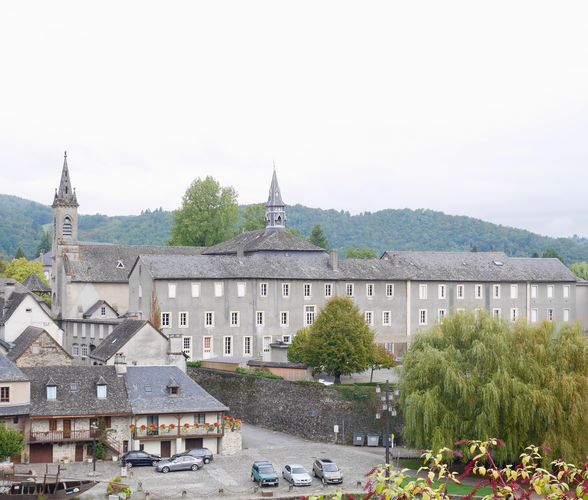 Il existe un parcours du patrimoine que je me procure à l'office du tourisme et qui me permettra de découvrir en moins de deux heures cette petite cité. Partant de la Place Da Maia, je descends en direction de l'ancien couvent des Récollets (ci-dessous en vue panoramique) qui est aujourd'hui devenu une école. Nous l'avons vu plus haut, le protestantisme ayant été largement diffusé à Argentat aux XVI-XVII ème siècles, la Contre-Réforme entrainera la création de trois couvents catholiques. Celui des Récollets abritait un ordre mendiant, avec sa chapelle qui fut fondée au début du XVII ème siècle. Acheté par la commune dès 1791, il servit d'atelier pour produire du salpêtre puis un petit séminaire y sera fondé vers 1810 et durant deux années. Vinrent ensuite les Ursulines qui occuperont l'endroit dès 1827 et reconstruisirent le couvent, jusqu'à ce qu'en 1940, arrivent les sœurs de la divine providence de Saint Jean de Bassel, qui fonderont l'actuelle Institution Jeanne d'Arc. Quant à l'église, elle sera dévastée pendant la Révolution. Celle-ci possédait jadis une statue en bois dorée de l'Immaculée Conception, qui est actuellement conservée dans la Chapelle du Saint-Sacrement, au fond de l'église paroissiale.