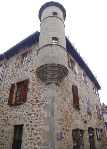Gérard et moi franchissons à nouveau la Dordogne pour découvrir la Vigerie (ci-dessous), ancien hôtel de l'échevin Chantegril de la Vigerie, devenu co-seigneur d'Argentat en 1633, à la suite du rachat d'une partie de la Seigneurie de Neuville. C'est là que se tiendront les assises de la juridiction de la Vigerie, ainsi que les sessions ordinaires des Etats de la vicomté de Turenne, en 1636 et 1640. Cette maison, composée d'éléments anciens, sera remaniée à plusieurs reprises. L'échauguette de l'angle est unique dans toute la cité et affirme le caractère de la bâtisse. Le toit de lauzes (ardoises) est quant à lui soutenu par une charpente monumentale, repérable depuis le pont. Très pentu, ce toit accentue la majesté de l'édifice qui reste l'un des plus remarquables d'Argentat. Dans la même rue se trouvait le Couvent des Clarisses, plus exactement des Clarisses urbanistes, qui s'implantèrent ici en 1647, donnant d'ailleurs le nom de leur couvent à la rue. La maison à tourelles du N°7 sera incorporée au couvent vers 1650. Puis, à partir de 1663, des dons importants permettront aux sœurs de faire bâtir un grand corps de logis avec chapelle au N°5. Cette communauté religieuse, qui était soumise à une règle sévère était vouée à la contemplation. Les filles de Sainte Claire ne furent plus que treize pour occuper 34 cellules et trois appartements à la veille de la Révolution, ce qui mettra fin aux activités de ce couvent.