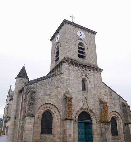 Terminons ce circuit du patrimoine par l'église (ci-dessous), implantée sur un point haut de la plaine d'Argentat. Si l'architecture date du XiX ème siècle, l'ensemble sera plusieurs fois restauré. Une première réhabilitation intervint en 1875. L'intérieur de l'église offre plusieurs panneaux d'autels en bois, comme « La Sainte Famille dans l'atelier de Joseph », sculpté sur un élément de chêne, en bas-relief, vers 1880.