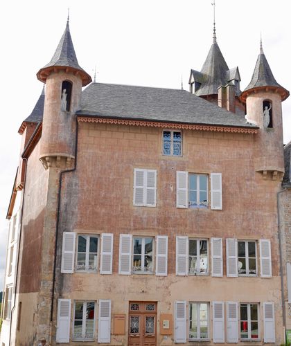 Là encore, l'office du tourisme me propose un circuit historique de la ville en visite libre. Muni de ma feuille de route, je débute mon parcours en passant devant la fontaine aux lions, ou « fontaine des marchands de vin ». Pourquoi donc cela ? J'apprendrais qu'autrefois, les paysans meymacois migraient une partie de l'année pour trouver du travail ailleurs. Et certains de se lancer dans le commerce du vin de Bordeaux. Ainsi Jean Gaye-Bordas, d'abord vendeur de parapluies à Bordeaux, durant les années 1865-66 trouvera qu'il sera plus rémunérateur de se lancer dans le négoce de vin à domicile, dans le nord du pays et même en Belgique. Enfant naturel, Jean Gaye-Bordas naquit non loin de là en 1826. Personnage hors du commun, célèbre pour ses aventures amoureuses et ses excentricités, sa vie sera une succession de fortunes et de faillites. Et chaque période de succès de se concrétiser par la construction de maisons. Celle de Meymac (ci-dessous) sera surnommée Château des Moines Larose et sera la plus réussie et la plus originale de toutes. C'est cependant dans la maison d'un ami à Ussel que notre homme s'éteindra le 30 décembre 1900. En pleine révolution industrielle, ce négoce du vin fait des émules et le commerce prend de l'ampleur. Ces affaires vont prospérer jusqu'à la Première guerre mondiale et, bien qu'on n'ait jamais vu de vignes en...Haute-Corrèze, Meymac offre toujours aujourd'hui quelques grands crus (Saint-Emilion et Pomerol) que l'on doit à quelques Meymacois avisés qui rachetèrent des vignobles bordelais à partir des années 1930. Ingénieux n'est-ce pas ?