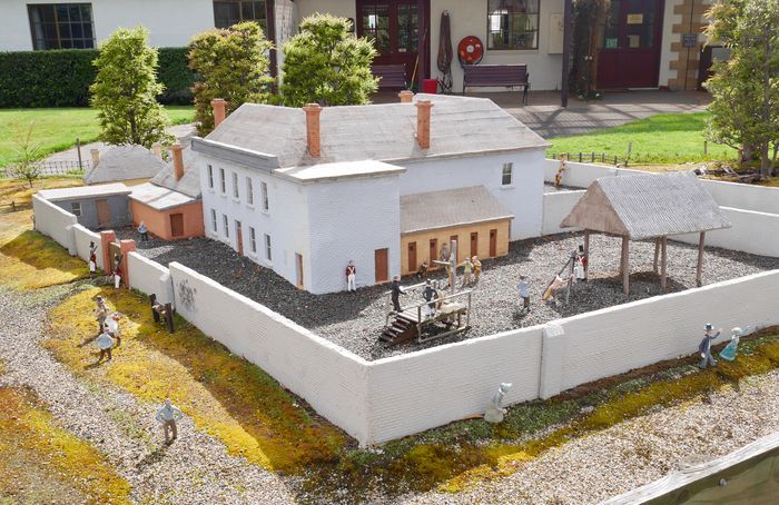 Les bagnards étaient divisés en plusieurs groupes. Les plus récalcitrants étaient isolés, enchainés et travaillaient durement sur des chantiers de construction, tandis que d'autres étaient affectés à des colons privés. La prison et le tribunal (ci-dessous) comptaient alors parmi les institutions les plus importantes, pour à la fois juger et punir les fauteurs de troubles. La prison de Hobart (deuxième photo) était quant à elle similaire à celle de Sydney ou de Norfolk. Et comportait une maison pour le geôlier et des quartiers séparés pour les différents groupes de bagnards.