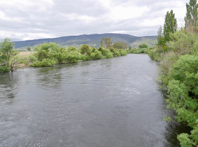 A cet endroit, la rivière Derwent offre une grande largeur (ci-dessous). Le cours d'eau prend naissance au lac Saint Clair, dans la région de Central Highlands (région des lacs de Tasmanie), et s'étire sur 200 kilomètres, en passant progressivement de 700 mètres d'altitude au niveau de la mer, pour atteindre la Storm Bay et se jeter dans la Mer de Tasman. Les rives de la rivière Derwent étaient occupées par les Aborigènes Mouheneener depuis 8000 ans, avant que les colons européens ne transforment ces terres en fermes agricoles, et n'élèvent petit à petit des barrages sur le cours tumultueux de la rivière. Le Derwent constitue un véritable poumon pour la ville de Hobart qui s'y approvisionne en eau, et 40% de la population de Tasmanie vit à proximité de ce cours d'eau et de son estuaire.