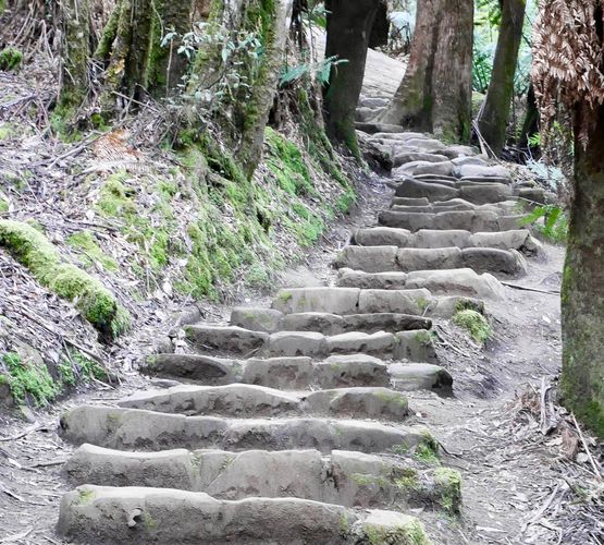 Pour ma part, je découvre les chemins forestiers sans pour autant disposer du temps nécessaire à une expédition. Une fois au pied des chutes Russell, des panneaux m'indiquent que je me trouve à 15 minutes des chutes d'eau Horseshoe, à 25 minutes des Grands arbres et à 50 minutes de marche des chutes de Lady Barron. Le chemin grimpe (ci-dessus) mais le temps se dégage et l'endroit est agréable. Je poursuis donc ma balade en guettant toutefois l'hypothétique présence d’ornithorynques le long des cours d'eau. Animal semi-aquatique endémique de l'Est de l'Australie, et de la Tasmanie, celui-ci est le seul mammifère à pondre des œufs au lieu de donner naissance à des petits complètement formés. Sa mâchoire ressemble à un bec de canard, et sa queue évoque celle d'un castor. Chose que j'ignorais, l'ornithorynque mâle est aussi l'un des rares mammifères venimeux, avec son dard situé sur les pattes postérieures qui peut paralyser une jambe humaine, voire même de tuer un chien. La chance ne sera pas avec moi cette fois et je n'apercevrai aucun ornithorynque.