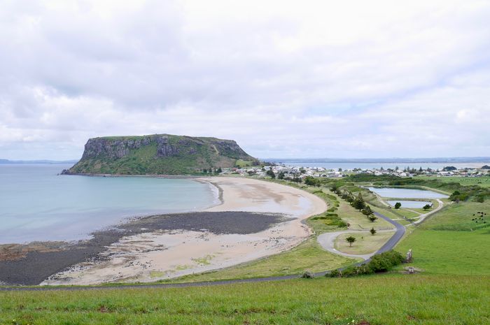 Méfiez-vous des réveils laissés programmés pour 4 heures du matin, par le client qui vous a précédé. J'ai ainsi été réveillé brutalement cette nuit. Ce matin, je pars à la (re)découverte de Stanley, deuxième ville du nord-ouest de la Tasmanie, malgré sa faible population. Je dis redécouverte car je m'étais déjà rendu sur place il y a une dizaine d'années de cela, et j'ai hier immédiatement reconnu The Nut (ci-dessous), cet immense rocher plat qui correspond à une anomalie volcanique que découvrirent déjà les navigateurs Bass et Flinders, lors de leur passage en 1798. Ils surnommèrent d'ailleurs ce rocher Circular Head, rocher qui s'élève à 143 mètres au-dessus du niveau de la mer et qu'on peut gravir à pied, ou en utilisant un mini-téléphérique. Je ne suis pas venu ici pour çà aujourd'hui, mais pour vous faire visiter la petite ville, à travers un circuit que tout un chacun peut effectuer librement, après s'être procuré le petit livret-guide auprès de l'office du tourisme.