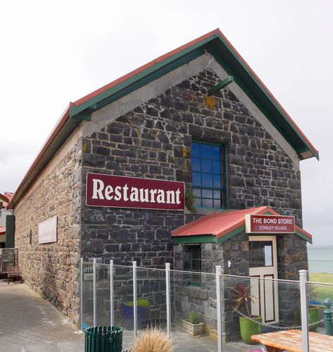 Ma visite débute en réalité depuis le Marina Park, sur le parking duquel j'ai garé mon véhicule. Le petit port qui ne comporte qu'un seul quai n'est pas très imposant et donne sur la Sawyers Bay. Il fut pourtant autrefois très actif, lorsque notamment les pommes de terre étaient exportées vers d'autres ports d'Australie. Les bateaux partaient également à la pêche aux écrevisses depuis Marine Park. Non loin de là, sur Wharf Road, se dresse encore le Bond Store (ci-dessous), ancienne maison des douanes érigée en 1835 à l'aide de sapin de la baltique et de pierres ayant jadis servies de ballast pour un certain nombre d’anciens navires ayant accosté ici. Là étaient stockées les marchandises destinées à être livrées à la résidence Highfield House, à quelques kilomètres de la ville. Plus tard, la bâtisse abritera une fabrique de bacon, servira de moulin à grain, jusqu'à devenir maintenant un restaurant. De l'autre côté de la place, toujours à Marina Park, se dresse toujours l'ancien magasin de la compagnie Van Diemen's Land (deuxième photo), érigé en 1843. Là encore, le bâtiment connaitra divers usages : lieu de détention, maison des douanes, crèmerie, poissonnerie et maintenant commerce.