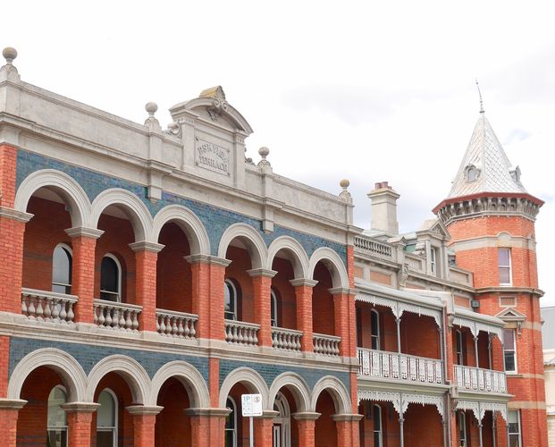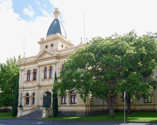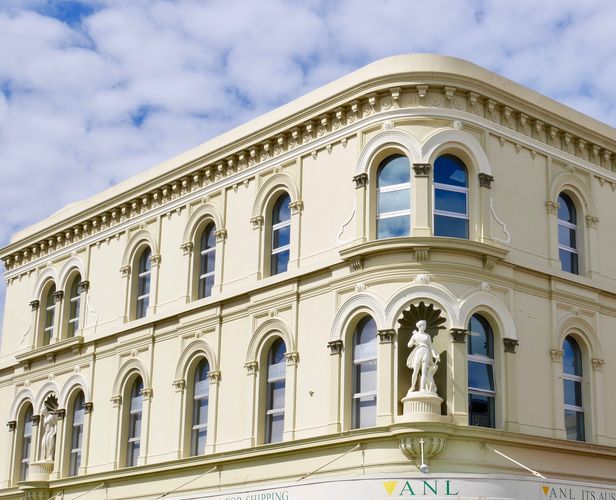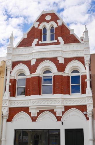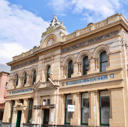 Autre bâtiment et autre façade : Mills Building (ci-dessous) déploie son style architectural à la fois victorien et italien, avec sa construction de briques et de stuc, déployée par l'architecte Peter Mills en 1882, pour s'en servir comme résidence personnelle. Plus tard, l'endroit deviendra une fabrique de meubles, puis une boutique, avant que la famille Steel ne l'occupe pour ses activités d’entreprise, au rez-de-chaussée, tandis que le premier étage a été réaménagé en appartements. Sa façade remarquable est ornée de très belles statues, dont celle de Diane, déesse de la chasse, Vénus et Fortuna. La Mairie (Town Hall) est quant à elle une construction imposante (deuxième photo). Sa première pierre sera posée en 1864, par le gouverneur Gore Brown, au cours d'un gala organisé pour l'occasion. Launceston était devenue une municipalité depuis 1852 et la ville ne pouvait pas rester durablement sans une mairie digne de ce nom. C'est Horace Bennett qui en tracera les plans, là encore dans le style italo-victorien, mais c'est le prolifique Peter Mills qui en supervisera la construction. Un an sera nécessaire pour bâtir l'édifice qui ouvrira ses portes en 1865, et les colonnes corinthiennes de la façade principale d'être portées au nombre de neuf durant les années 1930.