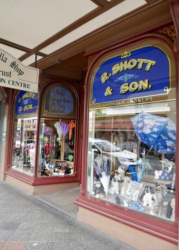 Je trouverai sur ma route l'unique boutique de parapluies de...Tasmanie. Il faut se rendre au 60, George Street pour la trouver et découvrir cette demeure désormais classée par le National Trust (ci)dessous). Au départ, l'endroit fut pourtant occupé par une épicerie à un étage. Un certain Mr Shott créa l'affaire dans les années 1860, puis la céda à ses successeurs après trois générations, en 1918. On y vendit alors des parapluies et de jolis souvenirs en bois noir. D'autres produits de Tasmanie et du National y sont également disponibles. Sur place, j'admirerai une vitrine exposant « Cent Ans de parapluies ». Rien d'étonnant, dans un pays adepte de la migration des baleines...