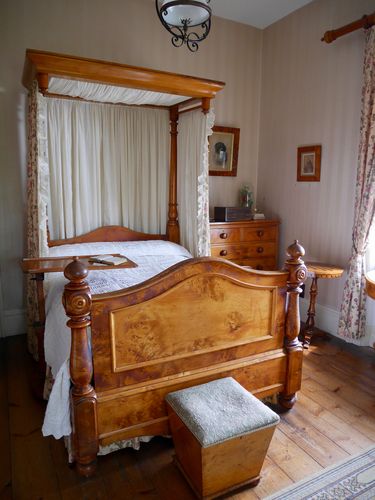 Une autre jolie pièce, toujours à l'étage, consiste en une chambre en bois de Huon (ci-dessous), orientée nord-est. Ses meubles sont ici faits en bois de Tasmanie, le pin Huon, bois découvert en 1804 sur les bords de la rivière Huon, qui fut rapidement utilisé pour la construction des navires, puis, plus tard, la fabrication de meubles. Le Capitaine Haig appréciait notamment ce matériau pour sa résistance, alors que les fabricants de meubles, eux, affectionnaient son grain décoratif.