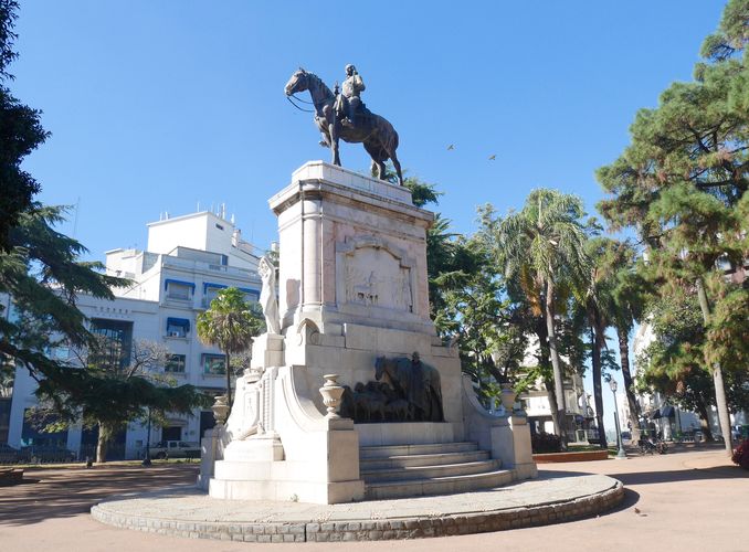 La ville fut fondée en 1726 par les Espagnols parmi lesquels Bruno Mauricio de Zabala qui possède aujourd'hui sa place (ci-dessous) et ses perruches, qui caquètent sans discontinuer dans les arbres (deuxième photo). A cet emplacement s'élevait jadis le fort de l'ancienne ville emmurée, fort qui sera détruit sur ordre du Colonel Lorenzo Latorre, afin d'y créer la place actuelle. Cette destruction prit place fin 1878 mais il faudra attendre 1890 pour voir inaugurée la place Zabala. L'endroit offre aux visiteurs de jolis jardins à l'européenne, du style Belle Epoque alors en vogue à Montevideo. Pourquoi avoir donné à cette place le nom de Bruno Mauricio de Zabala ? Sans doute parce que celui-ci fonda la ville de Montevideo. Notre homme fut militaire espagnol et exerça la fonction de gouverneur dans la région entre 1717 et 1734, et fut aussi pendant quelques temps gouverneur du Paraguay, un pays voisin. Né à Durango (Province de Vizcaya, Espagne), il débuta sa brillante carrière militaire dès 19 ans en participant à la Guerre de Succession espagnole, avant d'embarquer pour l'Amérique du Sud. Plusieurs nations étaient alors représentées dans le Rio de la Plata, dont les Français. Et la première tâche de Zabala de consister à repousser tous ces envahisseurs d'une région considérée comme hispanique par la Couronne espagnole. Une flottille de trois navires partit bientôt de Buenos Aires pour atteindre Montevideo afin de déloger la colonie portugaise occupante des lieux depuis la fin de 1723. Devant la supériorité numérique des Espagnols, les Portugais se retirèrent et Zabala lança immédiatement la fortification de cette ville qui allait s'appeler Montevideo.