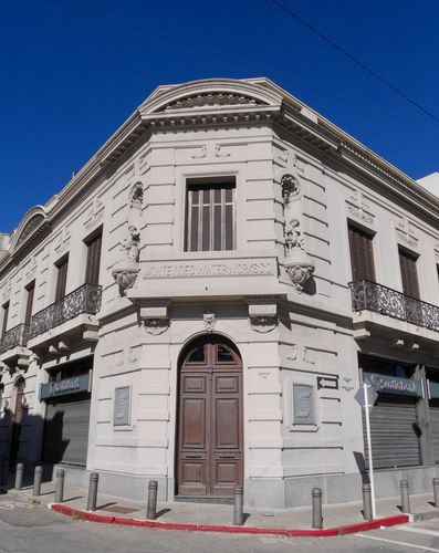 Les bâtiments du centre historique de la capitale uruguayenne attirent franchement l'oeil : ainsi, l'ancien siège de la Compagnie des eaux de Montevideo (ci-dessous), de style néo-classique, a t-il depuis cédé la place à une banque. Cette compagnie d'origine britannique gérait alors la concession des eaux uruguayennes en développant un réseau de conduites d'eau de 550 km dans la capitale, et en pompant le précieux liquide dans la rivière Santa Lucia, à 34 kilomètres de là. La compagnie fournissait ainsi l'eau à près de ...35000 maisons, et utilisait treize réservoirs et neuf filtres à sable. C'est en 1948 que les avoirs de cette compagnie des eaux seront vendus au gouvernement uruguayen.